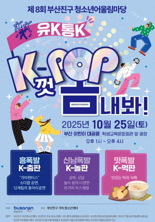 [파이낸셜경제=박영진 기자] 부산진구는 2025년 청소년어울림마당 행사로 ‘K껏 뽐[POP]내봐’라는 주제로 오는 10월 25일 오후 1시 부산 어린이대공원에서 개최한다고 밝혔다.