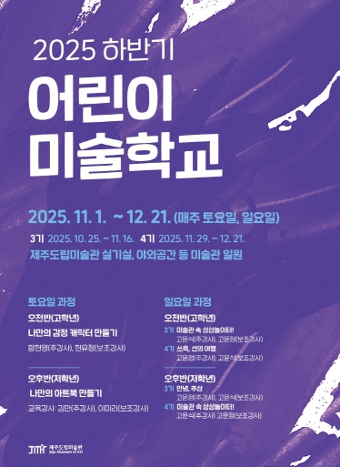 [파이낸셜경제=김영란 기자] 제주특별자치도 도립미술관(관장 이종후)은 10월 25일부터 12월 21일까지 ‘2025 어린이 미술학교’ 하반기 교육프로그램을 운영한다.