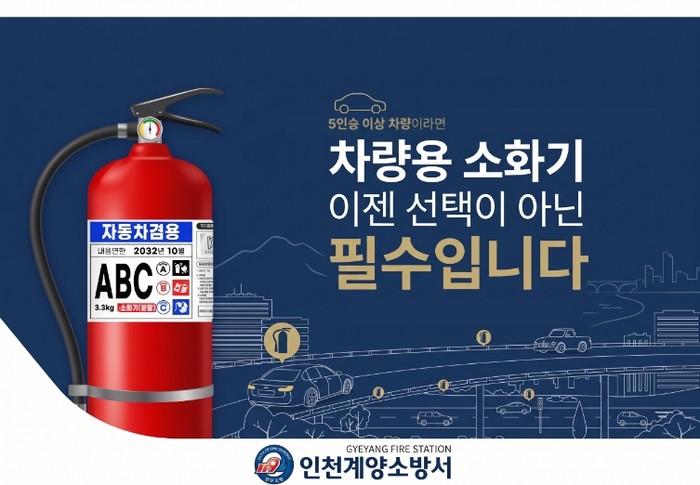 [파이낸셜경제=김기보 기자] 계양소방서(서장 송태철)는 완연한 봄을 맞아 주말 나들이 등 장거리 차량 이동이 증가함에 따라, 차량 화재 사고에 대비해 '차량용 소화기' 비치 및 상태 점검을 당부한다고 17일 밝혔다.