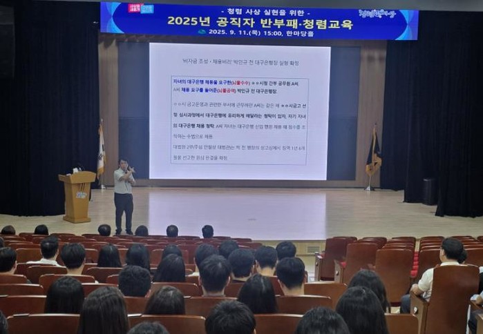 이번 교육은 청렴연수원 전문 강사를 초청해 영화 속 다양한 사례를 통해 청렴의 가치와 이슈를 살펴보는 방식으로 진행됐다.