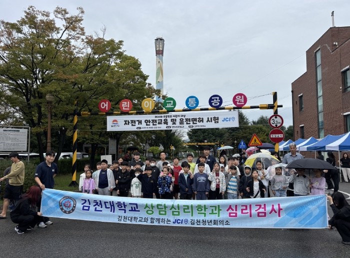 또한, 자전거 실기시험을 통해 자전거 운행을 직접 체험하고 교통안전 수칙을 배우며 안전에 대한 인식을 함께 높였으며 김천대학교 미술 심리치료 상담학과에서 심리테스트 및 그림 치료를 준비하여 행사에 참석한 어린이와 학부모들에게 색다른 경험도 제공했다.