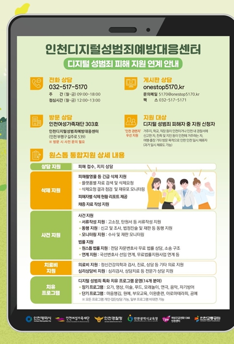 ▲ 인천디지털성범죄예방대응센터 피해 지원 안내문 |