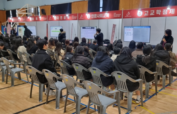 현장에서는 ▲고교학점제 ▲인문사회교육 ▲자연공학 ▲예체능 ▲의료보건 ▲고등학교 교육과정 안내 등 10개의 부스가 운영됐다.