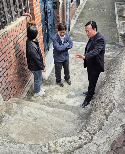 [파이낸셜경제=김예빈 기자] 심재억 강북구의회 도시복지위원장은 지난 2025년 10월 21일, 송천동 내 파손된 계단이 있는 골목길(삼양로22길12 앞)을 강북구 도로관리과 담당자와 방문하고 시설 개선을 촉구했다.
