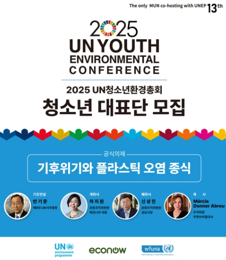 [파이낸셜경제=김기보 기자] 성남시청소년청년재단 판교유스센터와 환경단체 에코나우는 오는 11월 15일부터 16일까지 이틀간 성남 국립국제교육원에서 열리는 ‘2025 UN청소년환경총회’에 참가할 국내외 청소년 대표단 300명을 10월 13일까지 모집한다. 이번 총회는 성남시청소년청년재단 판교유스센터와 환경단체 에코나우가 공동 주관하며, 반기문 전 UN사무총장과 브라질 대사 등 주요 인사가 참석한다.