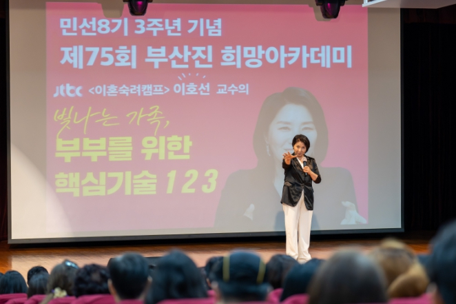 [파이낸셜경제=박영진 기자] 부산 부산진구는 7월 9일 오전 10시, 구청 대강당에서 심리상담가 이호선 교수를 초청하여 제75회 부산진 희망아카데미를 개최했다고 밝혔다.