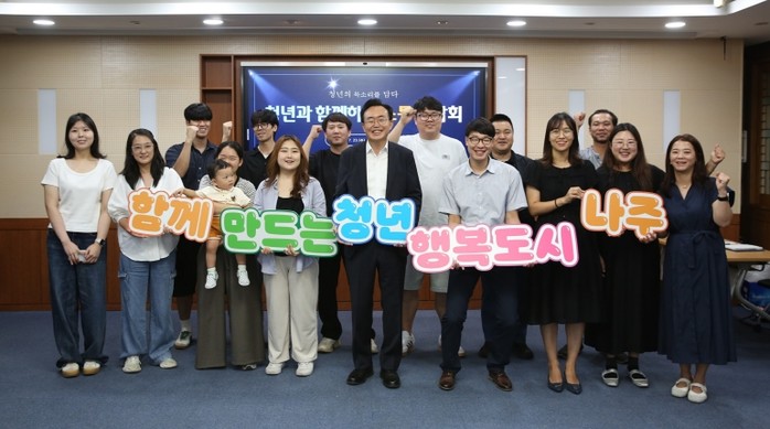 | ▲ 윤병태 나주시장이 지난 7월에 개최한 청년소통간담회에 참석한 청년들과 함께 사진 촬영을 했다 |
