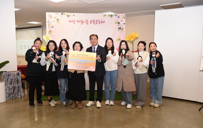 [파이낸셜경제=박영진 기자] 부산 사상구는 사상 마을이룸 교육공동체 ‘이쑴’(대표 신미자)과 수강생들이 지난 21일 공간523에서 지역 아동을 위해 직접 제작한 애착인형 40개를 사상구청에 기부하며 전달식을 진행했다고 밝혔다.