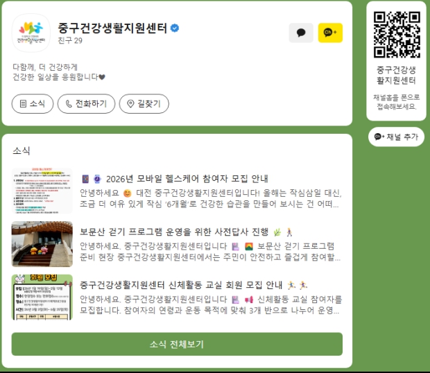 | ▲ ‘중구건강생활지원센터 카카오톡 채널 |