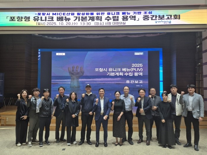 시는 29일 시청 대회의실에서 ‘포항형 유니크베뉴 기본계획 수립 용역’ 중간보고회를 열고 추진 현황과 향후 실행 방향을 논의했다.