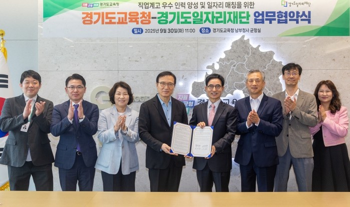 [파이낸셜경제=김기보 기자] 경기도교육청이 30일 남부청사에서 경기도일자리재단과 도내 직업계고 학생의 성공적 사회 진출 및 일자리 창출을 위한 업무 협약을 체결했다.