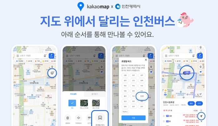 [파이낸셜경제=김기보 기자] 인천광역시는 오는 9월 30일부터 카카오맵을 통해 실시간(초정밀) 버스 위치 서비스를 제공한다고 밝혔다.