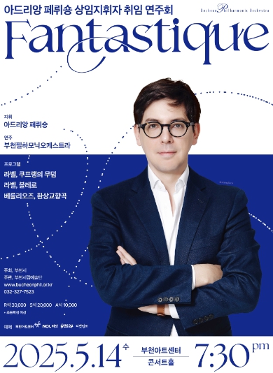 한편, 부천필하모닉오케스트라 제4대 상임지휘자 아드리앙 페뤼숑 취임연주회 'Fantastique'는 부천아트센터 홈페이지 및 각종 예매처(NOL 티켓, 티켓링크, 예스24티켓)에서 티켓을 구매할 수 있으며, 티켓가는 R석 3만원, S석 2만원, A석 1만원이다.