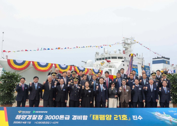 [파이낸셜경제=김영란 기자] 해양경찰청은 4월 1일, 울산광역시 동구에 소재한 HD현대중공업㈜에서 3000톤급 신형 경비함 태평양 21호(3021함)의 진수식을 개최했다.