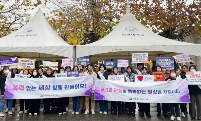 [파이낸셜경제=김기보 기자] 인천 미추홀구는 27일 여성 폭력 추방 주간을 맞아 인하대학교 일대에서 민·관·경 ‘합동 폭력 예방 캠페인’을 진행했다.