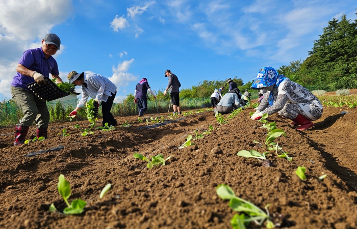 황 주무관은 노학동 보람농장 일원에서 배추 모종을 심는 노학동통장협의회 회원들의 모습을 사진에 담아 ‘나눔의 약속’이라는 제목으로 작품을 출품했다. 사진에 등장한 보람농장은 노학동 통장협의회에서 관리하는 농장으로, 배추 모종을 심어 11월에 수확해 김치를 담궈 소외계층에 전달하는 나눔의 장이다. 배추를 심지 않는 기간에는 감자 등을 재배 및 수확해 판매하고 이를 지역 내 저소득층 지원을 위한 성금으로 활용한다.