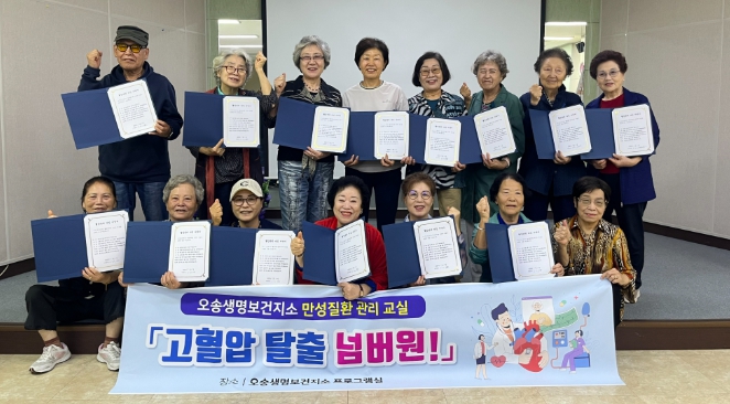[파이낸셜경제=김기보 기자] 청주시 흥덕보건소는 30일 오송생명과학단지 건강증진형 보건지소에서 지역 주민의 고혈압 예방과 자가건강관리 능력 향상을 위한 ‘고혈압 탈출 넘버원!’ 프로그램이 성황리에 마무리했다.