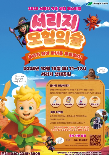 [파이낸셜경제=김지훈 기자] 대구 북구청은 오는 10월 18일 동호동 서리지 생태공원 일원에서 '2025 서리지 가족 체험 페스티벌 – 서리지, 모험의 숲'을 개최한다고 밝혔다.