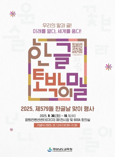 [파이낸셜경제=김예빈 기자] 경상남도교육청은 30일 창원컨벤션센터(CECO)에서 ‘2025 제579돌 한글날 맞이 행사’를 성황리에 개막하며, 이틀간의 뜻깊은 여정을 시작했다.