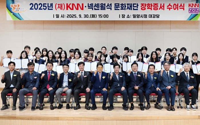 [파이낸셜경제=김예빈 기자] 경남 밀양시는 30일 시청 대강당에서 (재)KNN문화재단·(재)넥센월석문화재단(이사장 강병중) 장학증서 수여식을 개최했다고 밝혔다.