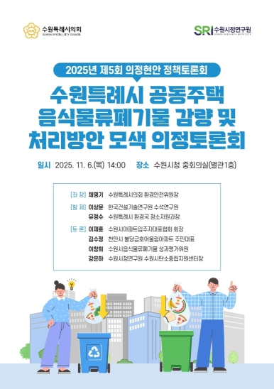| ▲ 수원특례시의회 환경안전위원회, 「공동주택 음식물쓰레기 관련 의정토론회 포스터 |