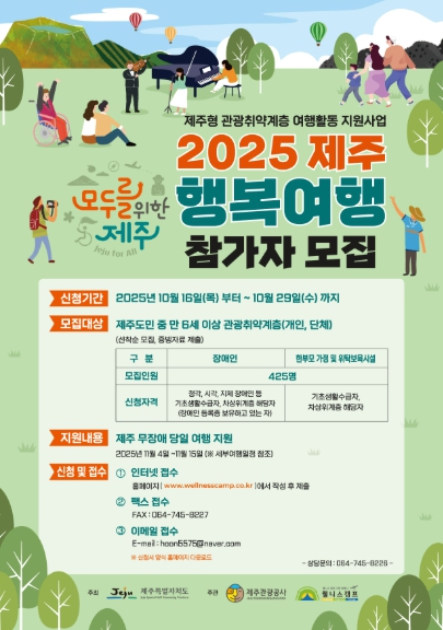 | ▲ 스터] 2025 제주 행복 여행 참가자 모집 |