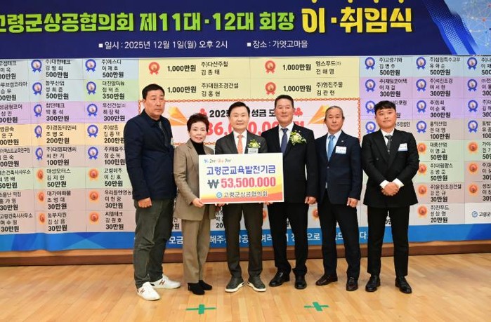 [파이낸셜경제=김지훈 기자] 고령군상공협의회에서 12월 1일 가얏고마을에서 개최된 ‘2025년 고령군상공협의회 워크숍·정기총회 및 회장 이·취임식’에서 지역의 교육 발전과 인재 양성을 위해 사용해 달라며 교육발전기금 5,350만원을 기탁했다.