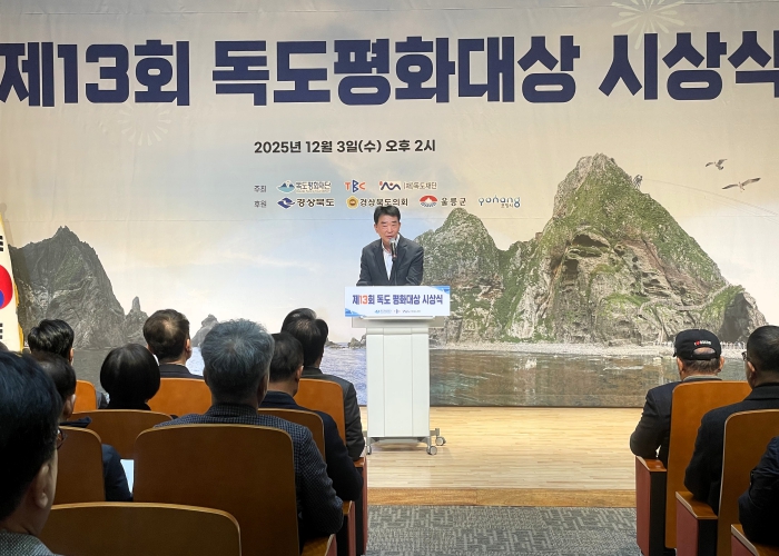 [파이낸셜경제=김지훈 기자] 경상북도와 (재)독도평화재단은 3일 동부청사 강당에서 경상북도 환동해지역본부장, (재)독도평화재단 이병석 대표, 포항시장, TBC 대표이사, 수상자 등 100여 명이 참석한 가운데 제13회 독도평화대상 시상식을 개최했다.