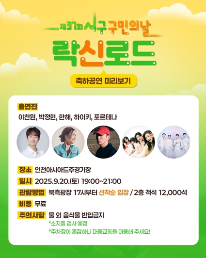 서구 관계자는 “새로운 미래로 나아가는 서구민이 화합할 수 있는 자리가 될 것”이라며 “행사를 즐기는 구민들도 질서 있고 안전한 행사가 되도록 협조해 달라”고 덧붙였다.