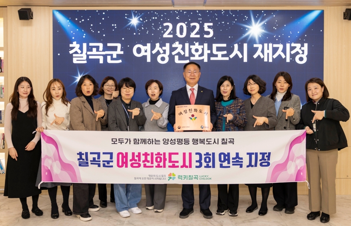 [파이낸셜경제=김지훈 기자] 칠곡군이 성평등가족부로부터 경북 내 군 단위 최초로 3회 연속 여성친화도시로 지정됐다.
