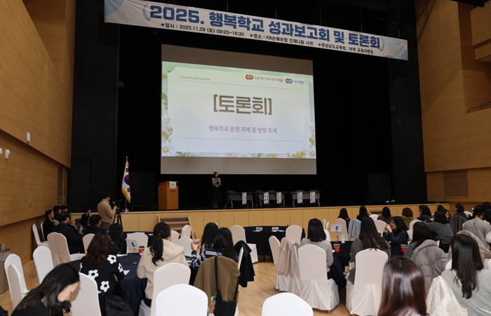 [파이낸셜경제=김예빈 기자] 경상남도교육청은 29일 KB손해보험 인재니움 사천에서 도내 행복(나눔·맞이)학교 담당자 및 교육지원청 관계자 300명이 참석한 가운데 ‘2025 행복학교* 성과보고회 및 토론회’를 개최했다.