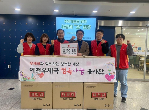 이천시노인종합복지관 이석영 관장은 “이천우체국의 따뜻한 나눔에 감사드린다”라며 “어르신들께 잘 전달해 도움이 될 수 있도록 하겠다”라고 말했다.