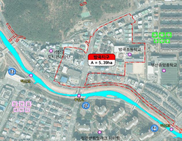 정관읍 방곡지구는 지난 2014년 집중호우와 2021년 태풍 ‘오마이스’당시, 좌광천 홍수위 상승과 하수관거 용량 부족 등으로 반복적인 침수피해가 발생해 온 지역이다.