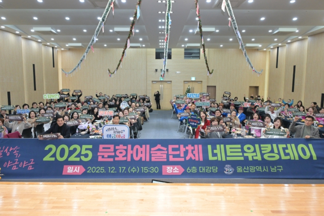 [파이낸셜경제=김예빈 기자] 울산 남구는 17일 남구청 6층 대강당에서 ‘문화예술단체 네트워킹데이’를 개최해 지역 문화예술단체 간 교류와 협력을 강화하고 활동 성과를 공유하기 위한 소통의 시간을 가졌다.