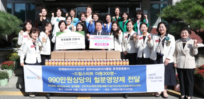 [파이낸셜경제=김기보 기자] 청주시 국제로타리3740지구 소속 9개 여성로타리클럽은 17일 청주시청을 찾아 성장기인 취약계층 아동(드림스타트)을 위해 영양제를 기탁했다.