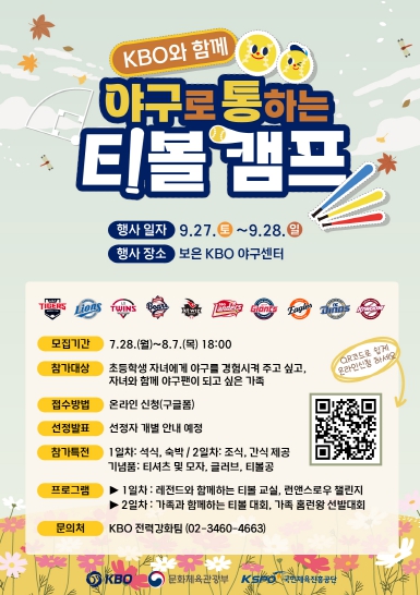 [파이낸셜경제=금윤지 기자] KBO는 ‘2025 제2차 야구로 통하는 티볼캠프’에 참가할 가족을 오늘(28일)부터 8월 7일(목) 오후 6시까지 모집한다.