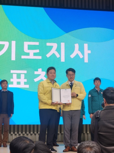 | ▲ 수원시와 경기도 관계자가 수상 후 기념사진을 촬영하고 있다. |