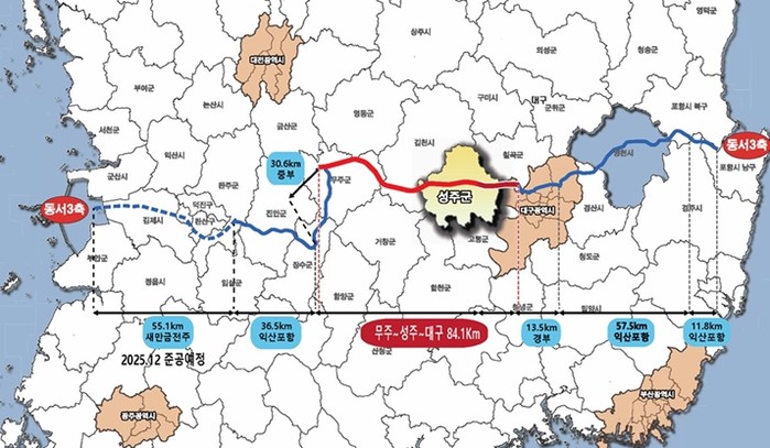 성주~대구 구간(L=18.8km)은 2023년 1월부터 예비타당성조사를 진행해 오고 있으며, 무주~성주 구간은 2024년 7월부터 사전타당성 검토를 진행하고 있지만, 별도의 사업으로 추진해 옴에 따라 경제성이 부족한 것으로 분석됐다.