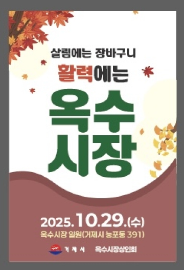 [파이낸셜경제=김예빈 기자] 거제시는 오는 29일 옥수시장에서 전통시장 활성화와 지역경제 회복을 위해 다양한 이벤트와 공연 행사를 개최한다.