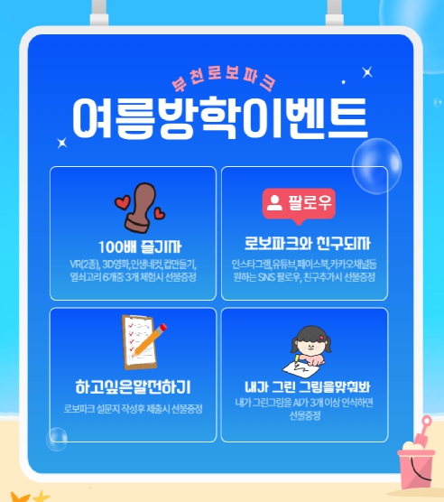 [파이낸셜경제=김기보 기자] 부천산업진흥원이 운영하는 부천로보파크는 여름방학을 맞아 어린이와 가족을 대상으로 특별 체험 이벤트를 오는 8월 1일부터 17일까지 진행한다.