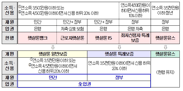 | ▲ 정책서민금융 상품체계 개편방향 |