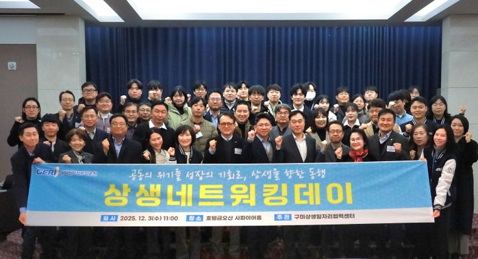 [파이낸셜경제=김지훈 기자] 구미상생일자리협력센터(센터장 유경숙)는 12월 3일 호텔 금오산 사파이어홀에서 ‘25년 센터 지원사업 참여기업 및 이차전지 기업 협력 협의회 회원사 대표, 임직원 등 100명이 참석한 가운데‘상생네트워킹데이’를 개최했다.