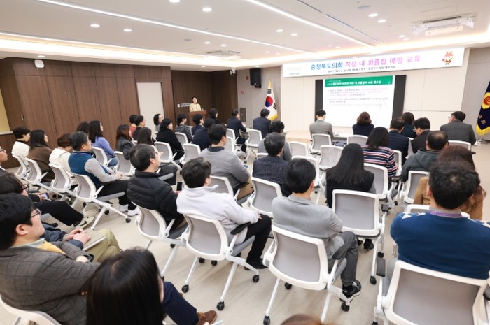 [파이낸셜경제=김기보 기자] 충북도의회는 23일 도의회 회의실에서 사무처 직원을 대상으로 직장 내 괴롭힘 예방 교육을 실시했다.