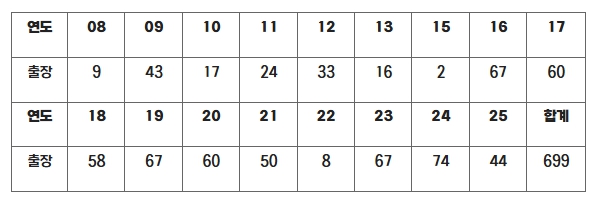 | ▲ 롯데 김상수 연도별 출장 경기 수 |