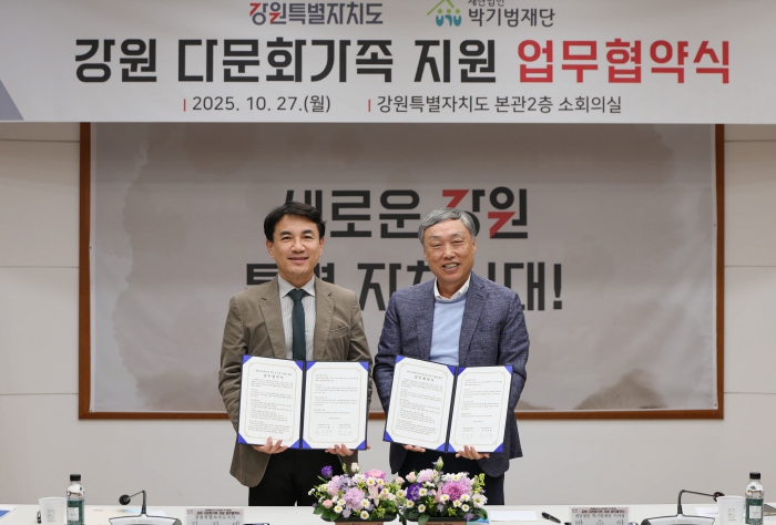 [파이낸셜경제=조성환 기자] 강원특별자치도는 10월 27일 오후 3시 30분, 도청 본관2층 소회의실에서 재단법인 박기범재단과 강원 다문화가족 지원을 위한 업무협약을 체결했다.
