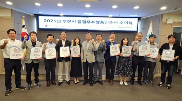 [파이낸셜경제=김기보 기자] 부천산업진흥원(원장 신동학)은 중소기업의 경쟁력을 강화하고 지역 우수 제품을 널리 알리기 위해 추진한 '2025년 부천시 품질우수상품 선정 지원사업'의 심사 절차를 마무리하고, 7월 16일 인증서 수여식을 개최했다.