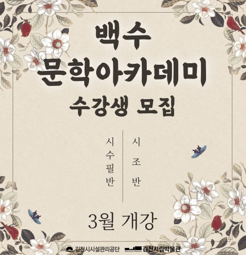 [파이낸셜경제=김지훈 기자] 김천시시설관리공단(이사장 김재광)은 오는 3월부터 백수문학관과 김천시립박물관이 연계한 교육 프로그램 ‘백수문학아카데미’를 운영한다.