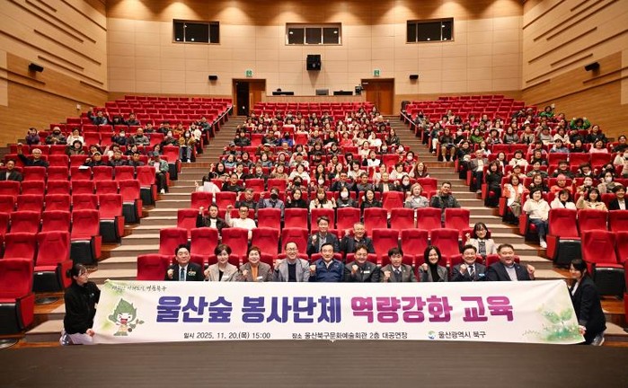 [파이낸셜경제=김예빈 기자] 울산 북구는 20일 북구문화예술회관에서 울산숲 봉사단체 역량강화 교육을 실시했다.