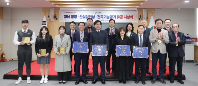 경남도는 8일 오후 도청 도정회의실에서 ‘2025 경남 명장‧산업평화상 및 전국기능경기 유공 시상식’을 개최하고, 올해의 경남 명장과 산업평화상, 전국기능경기대회 유공자에게 명장 증서와 상패 등을 수여했다. 시상식에는 수상자 및 가족 등 50여 명이 참석했다.