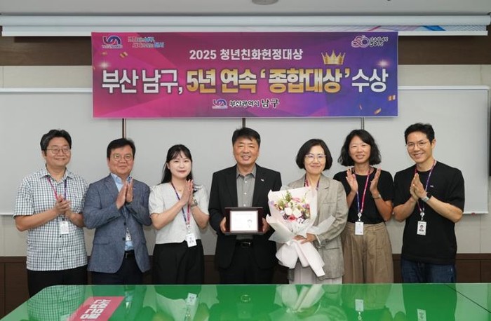 [파이낸셜경제=박영진 기자] 부산 남구가 (사)청년과미래 주관 청년친화헌정대상에서 5년 연속 종합대상을 수상했다고 밝혔다.